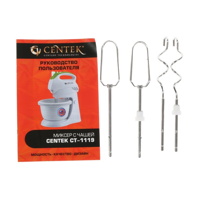 Миксер электрический с чашей Centek (бел/зел) 350Вт, 2.5л, 5 скоростей+турбо, взбивание/замешивание