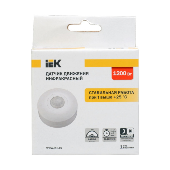 Датчик движения iEK белый (макс 1.2кВт, 360°, 6м) ДД-025