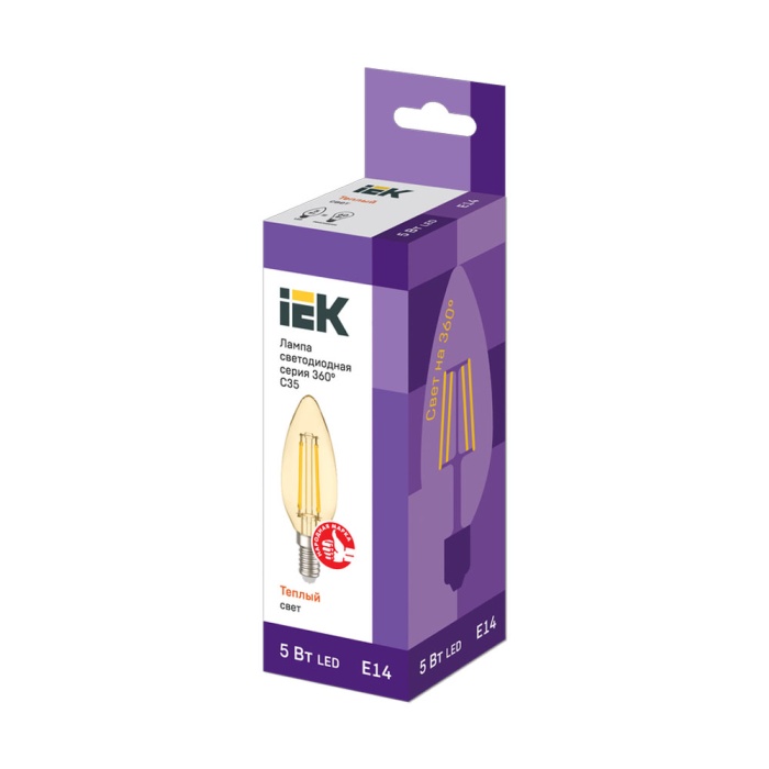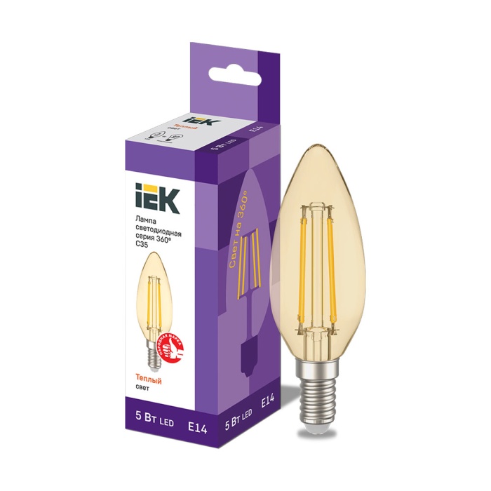 Лампа светодиодная iEK C35 свеча золото 5Вт(40ВТ) 600лм E14 Т/С (2700K)