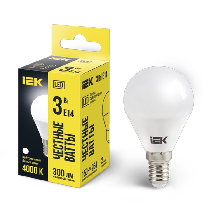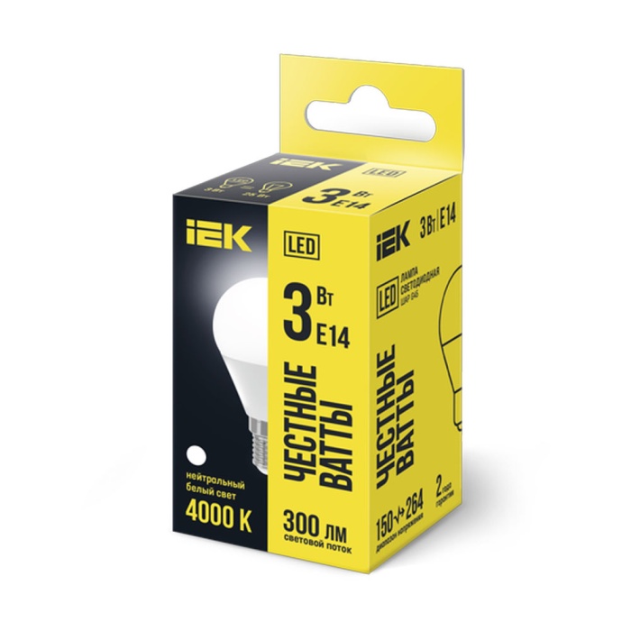 Лампа светодиодная iEK G45 шар 3Вт(25Вт) 216лм E14 Н/С (4000K)