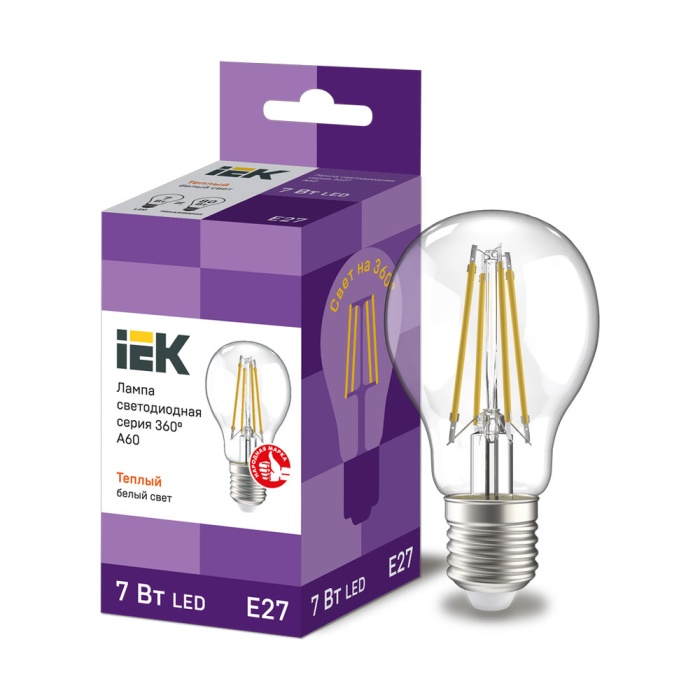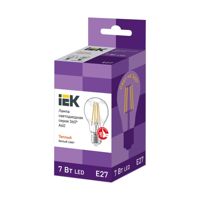 Лампа светодиодная iEK A60 груша прозрачная 7Вт(60Вт) 840лм E27 Т/С (3000K)