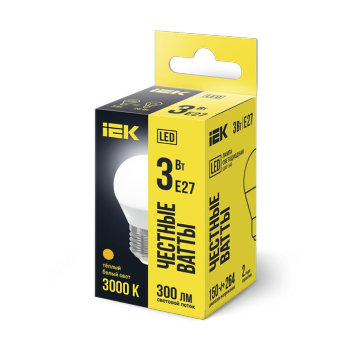 Лампа светодиодная iEK G45 шар 3Вт(25Вт) 216лм E27 Т/С (3000K)