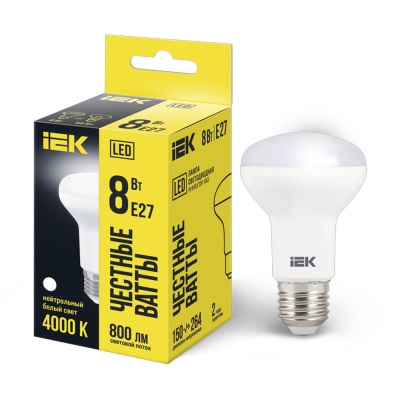 Лампа светодиодная iEK гриб 8Вт(60Вт) 720лм E27 Н/С (4000K) (10/100) R63 рефлектор
