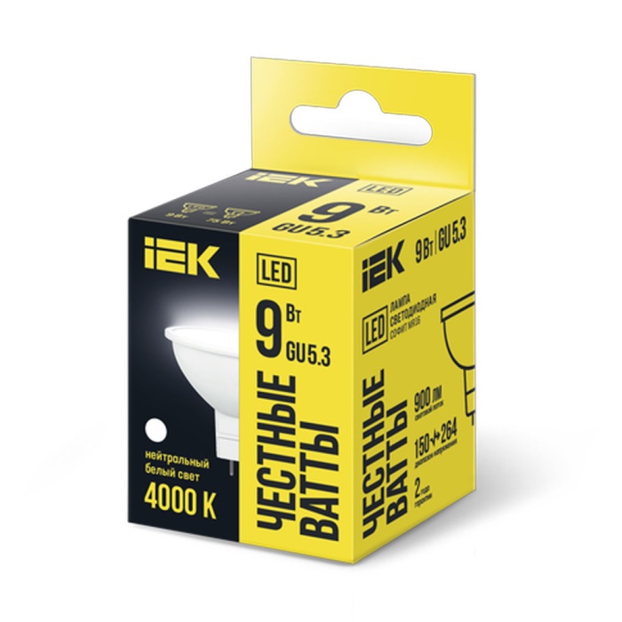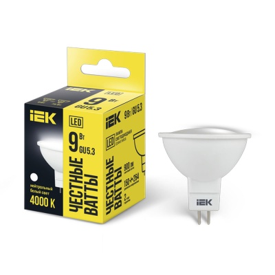 Лампа светодиодная iEK MR16 софит 9Вт(60Вт) 700лм GU5.3 Н/С (4000K)